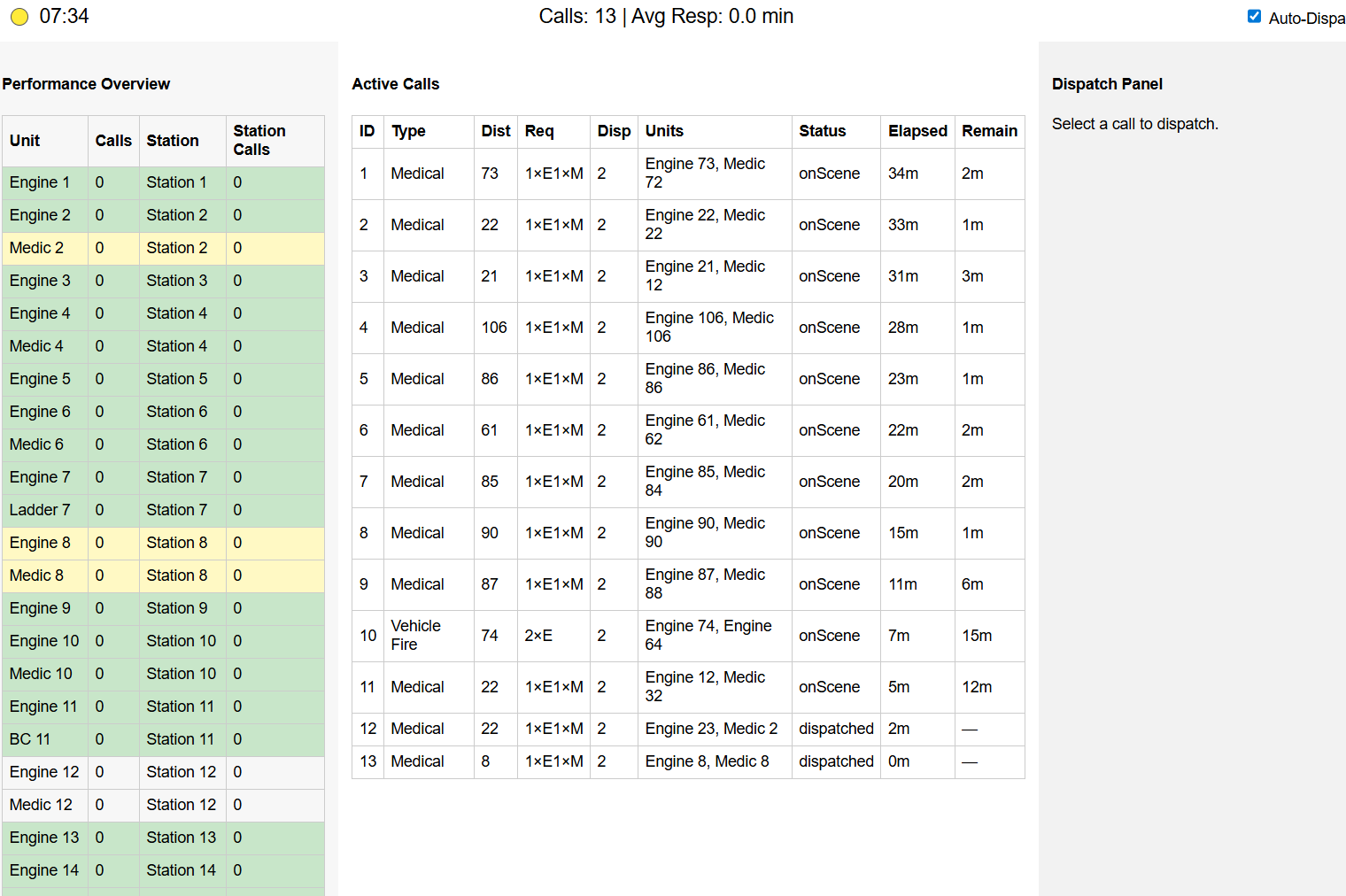 Browser version of my fire command dispatch sim. No downloads needed. Just click run game and it opens in browser.This version is mainly for desktop due to the UI. May look different if on mobile device.
